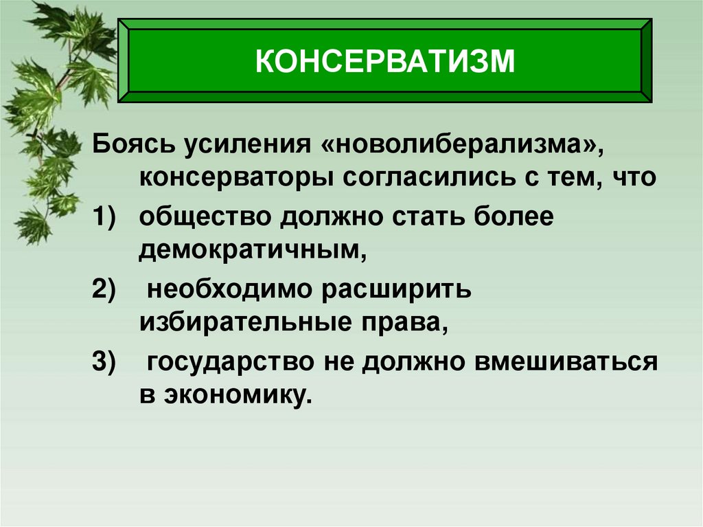 В XIX веке в Западной Европеоформились 3 основных общественнополитических течения:
