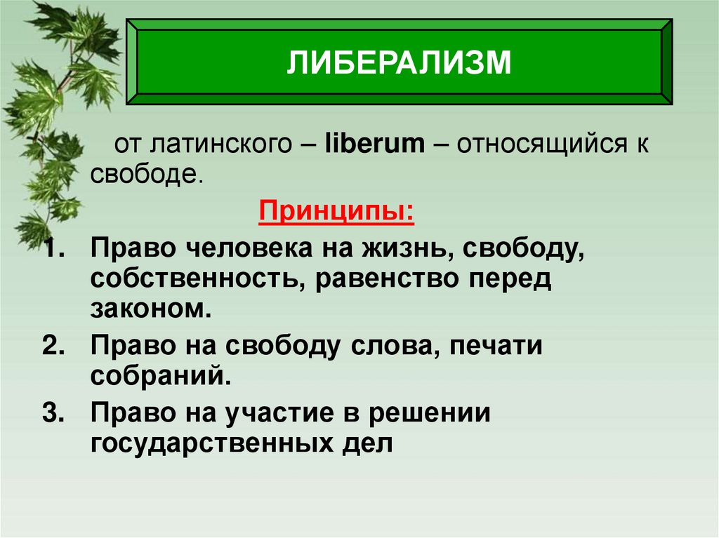 ЛИБЕРАЛИЗМот латинского – liberum – относящийся к