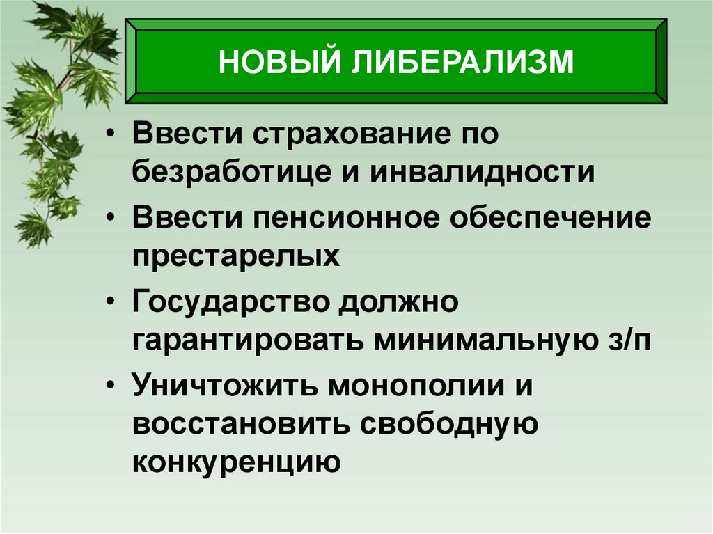 НОВЫЙ ЛИБЕРАЛИЗМ• Ввести страхование по