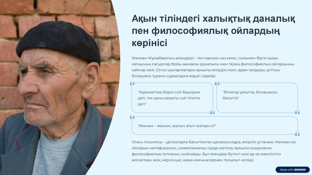Ол тек ақын ғана емес, сонымен қатар терең ойшыл, ұлтжанды азамат