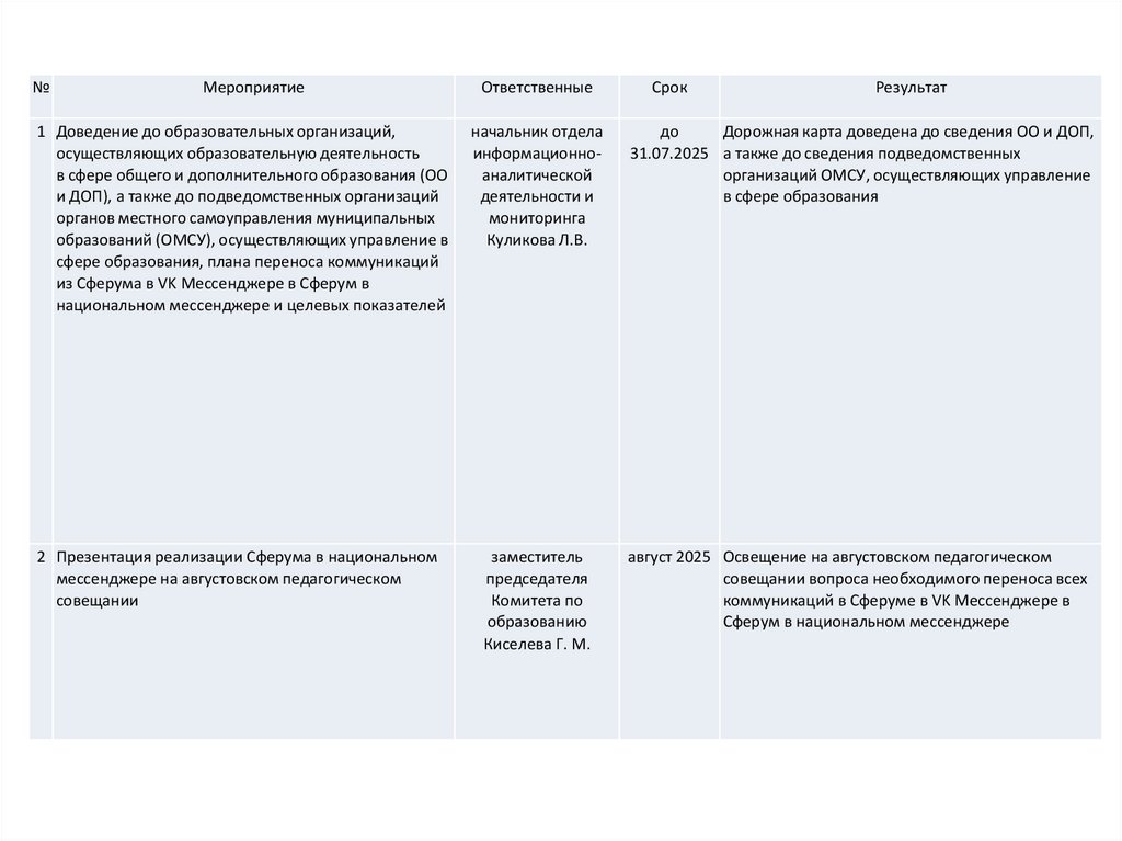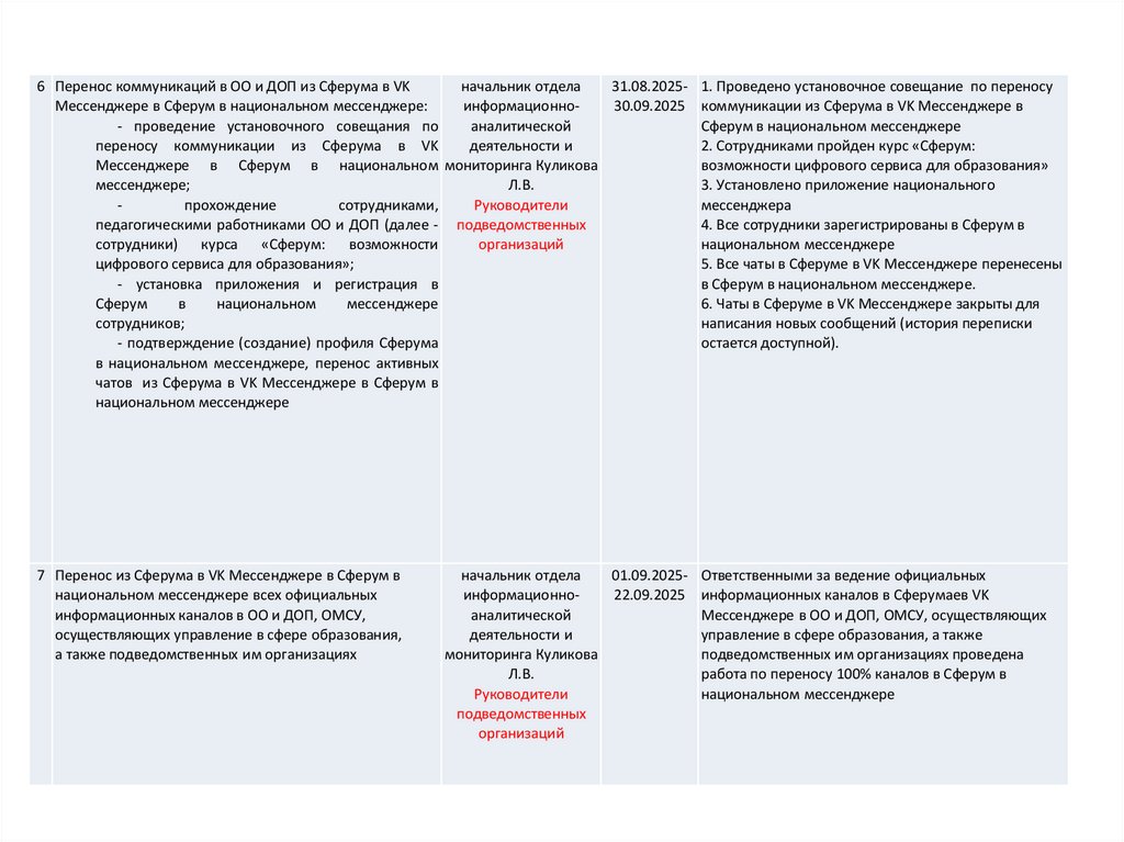 6 Перенос коммуникаций в ОО и ДОП из Сферума в VKначальник отдела