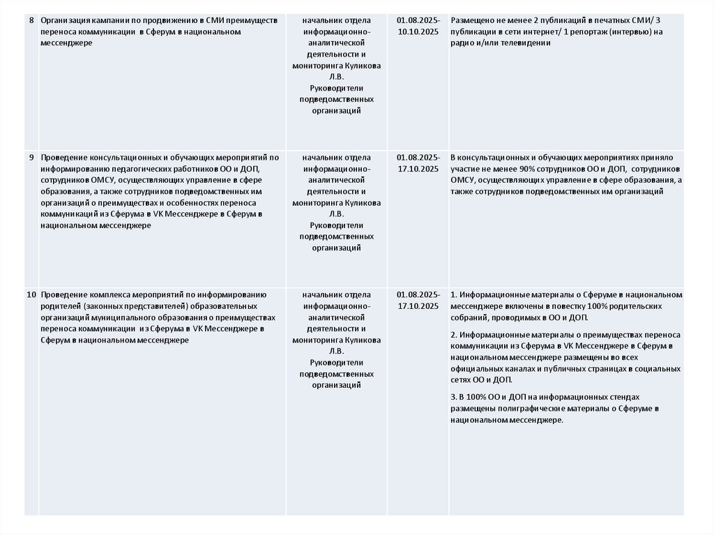 8 Организация кампании по продвижению в СМИ преимуществпереноса коммуникации в Сферум в национальном