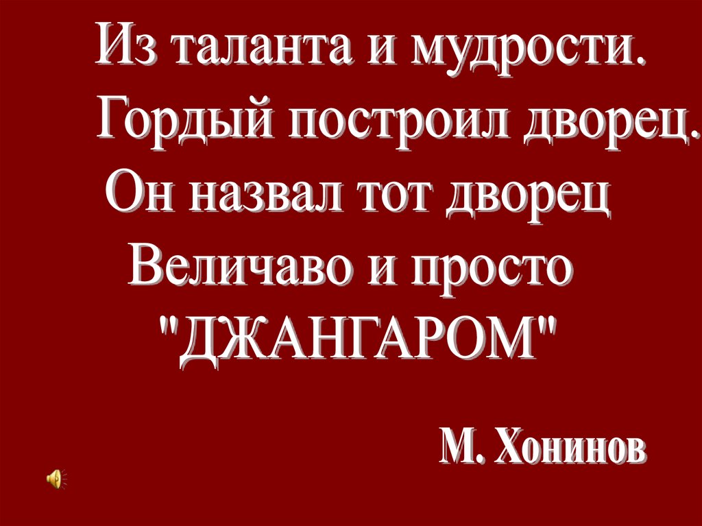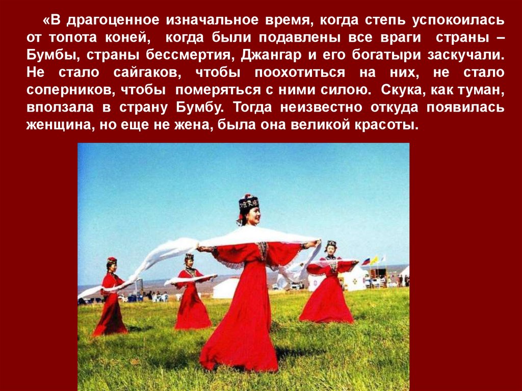 «В драгоценное изначальное время, когда степь успокоиласьот топота коней, когда были подавлены все враги страны –