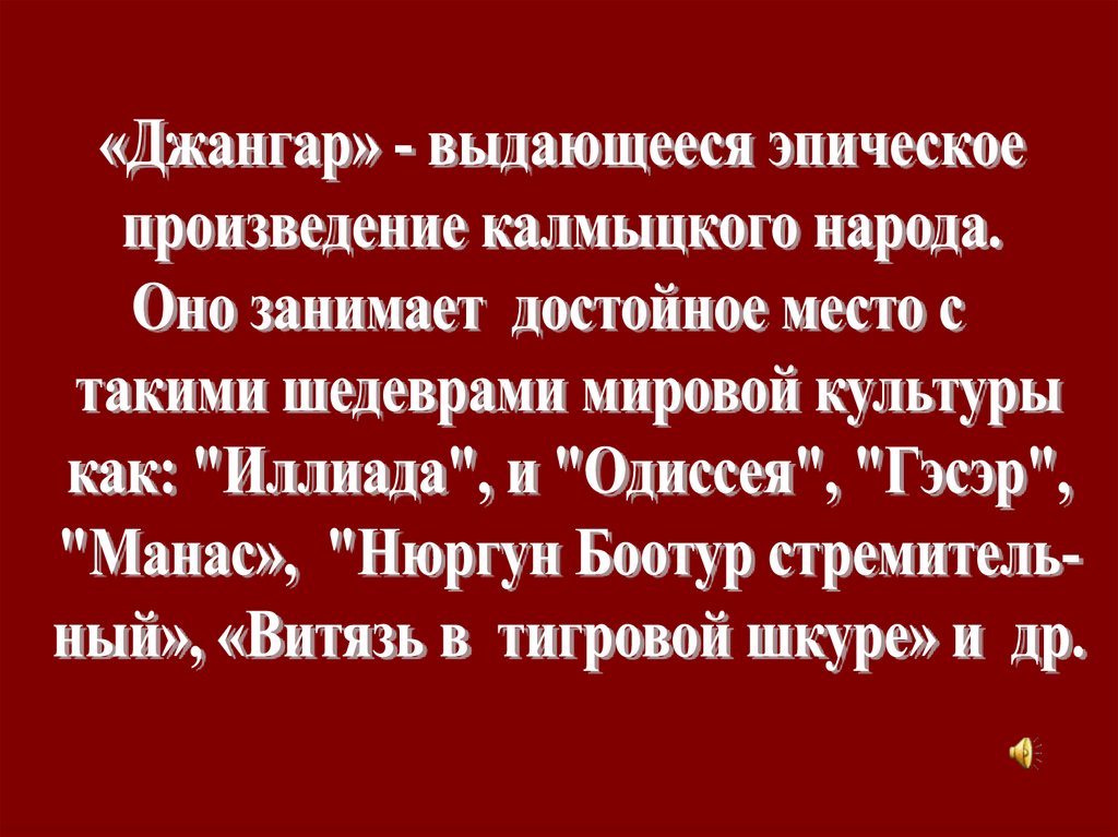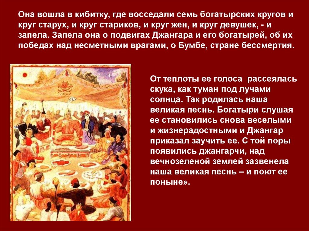 запела. Запела она о подвигах Джангара и его богатырей, об их