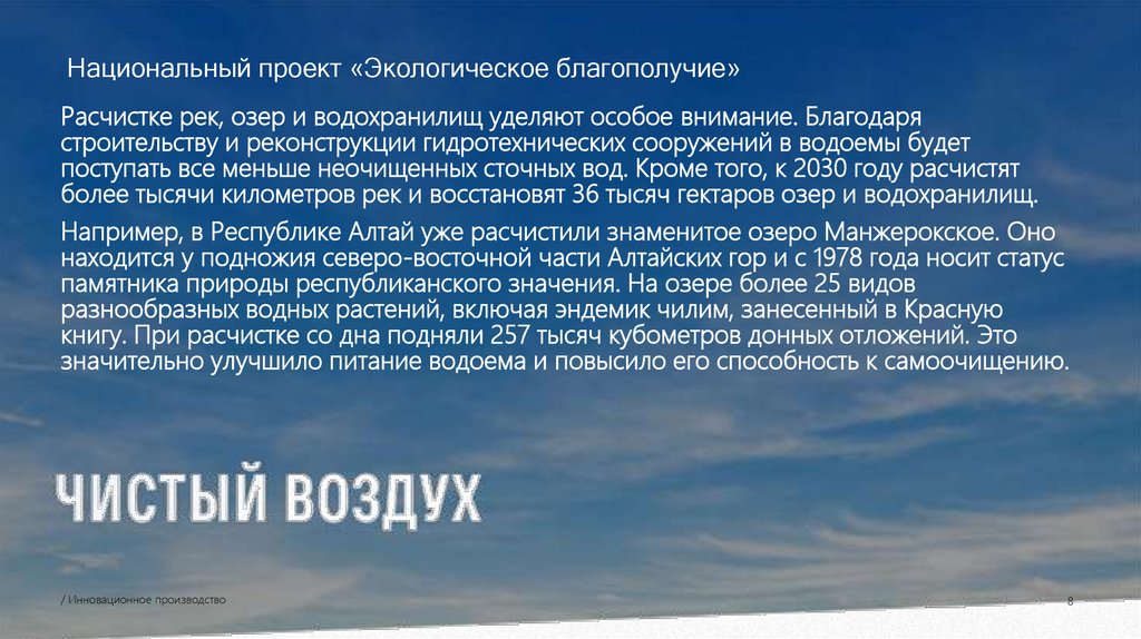 Национальный проект «Экологическое благополучие»Благодаря этой инициативе в есть