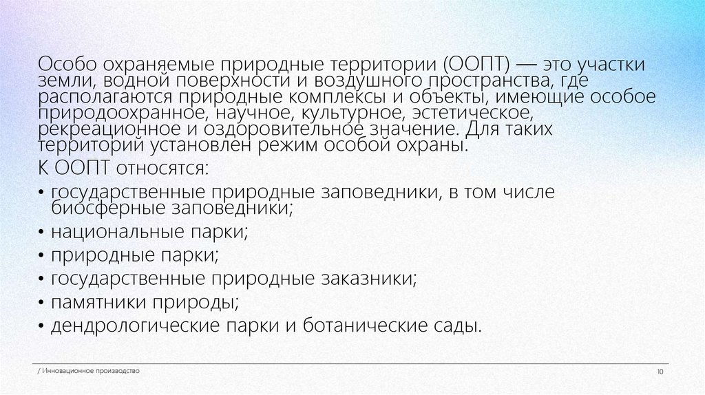Особо охраняемые природные территории (ООПТ) — это участкиземли, водной поверхности и воздушного пространства, где
