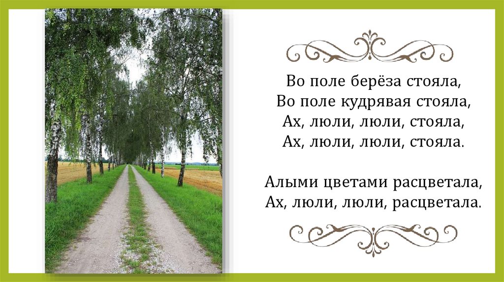 Во поле берёза стояла,Во поле кудрявая стояла,