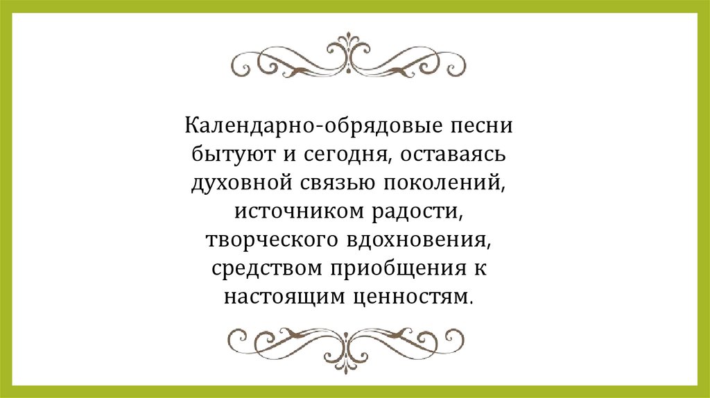 Календарно-обрядовые песнибытуют и сегодня, оставаясь