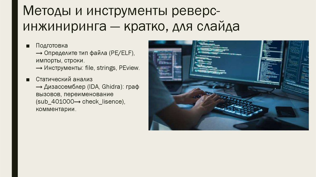 Методы и инструменты реверсинжиниринга — кратко, для слайда■ Подготовка