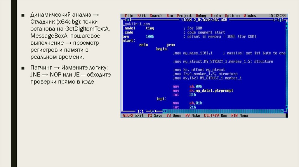■ Динамический анализ →Отладчик (x64dbg): точки