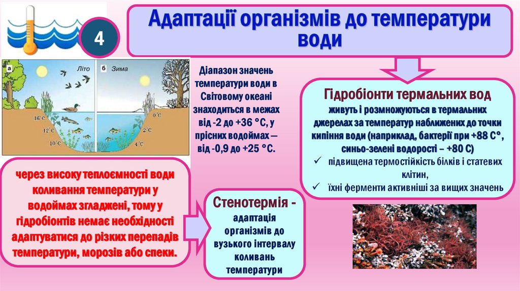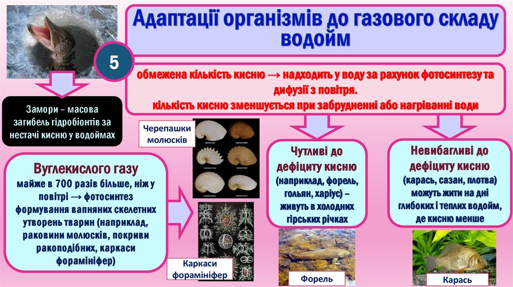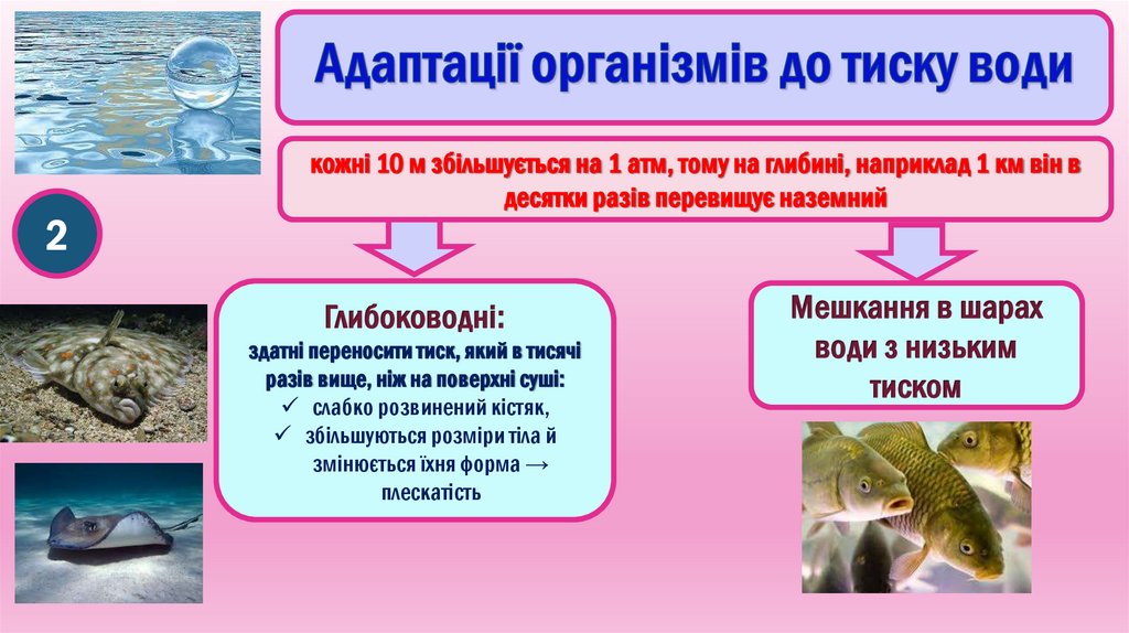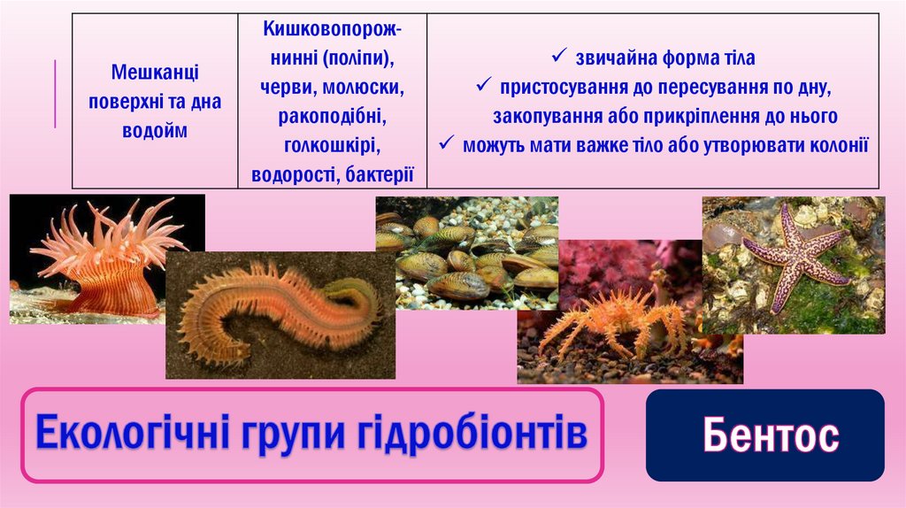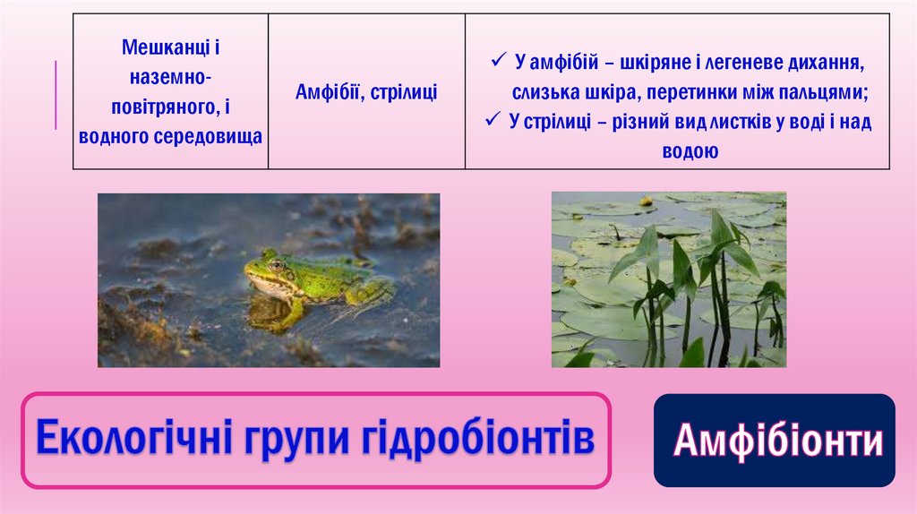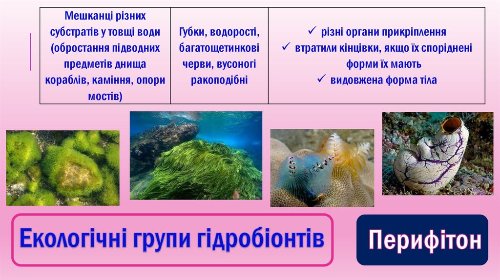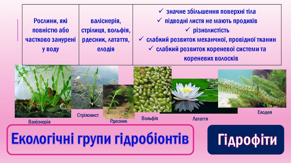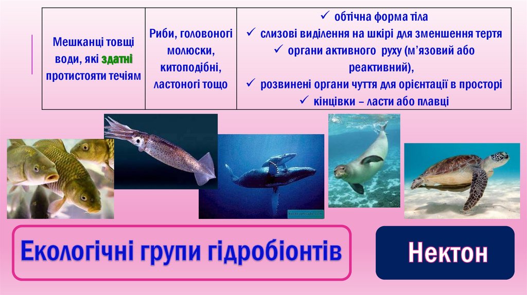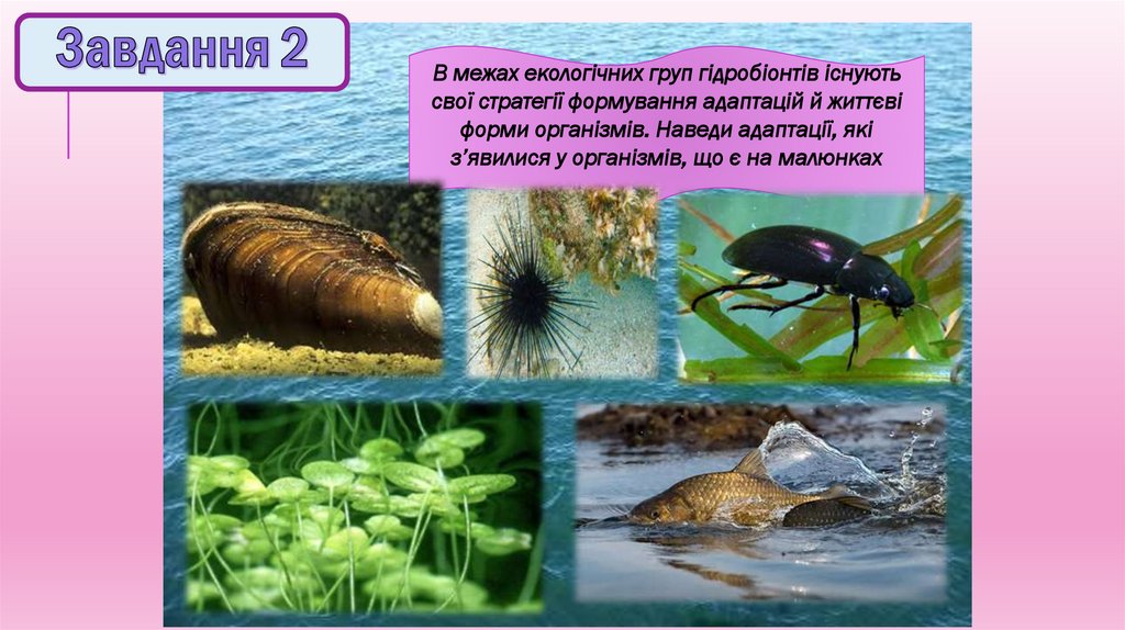 1. Порівняйте адаптації основних груп гідробіонтів.