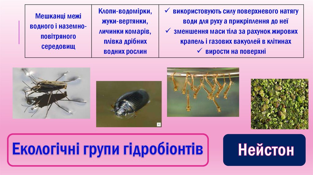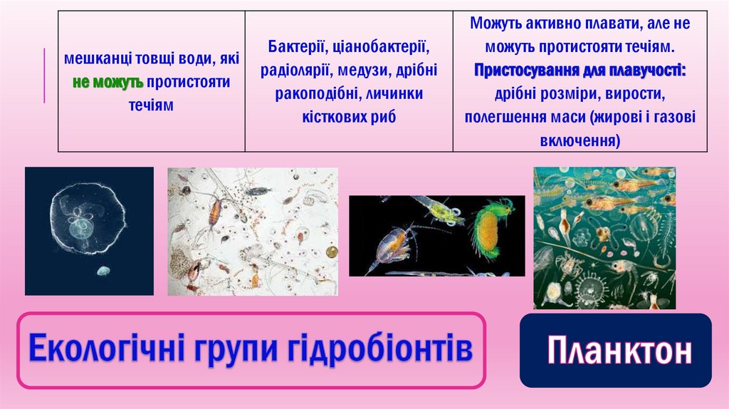 В межах екологічних груп гідробіонтів існуютьсвої стратегії формування адаптацій й життєві
