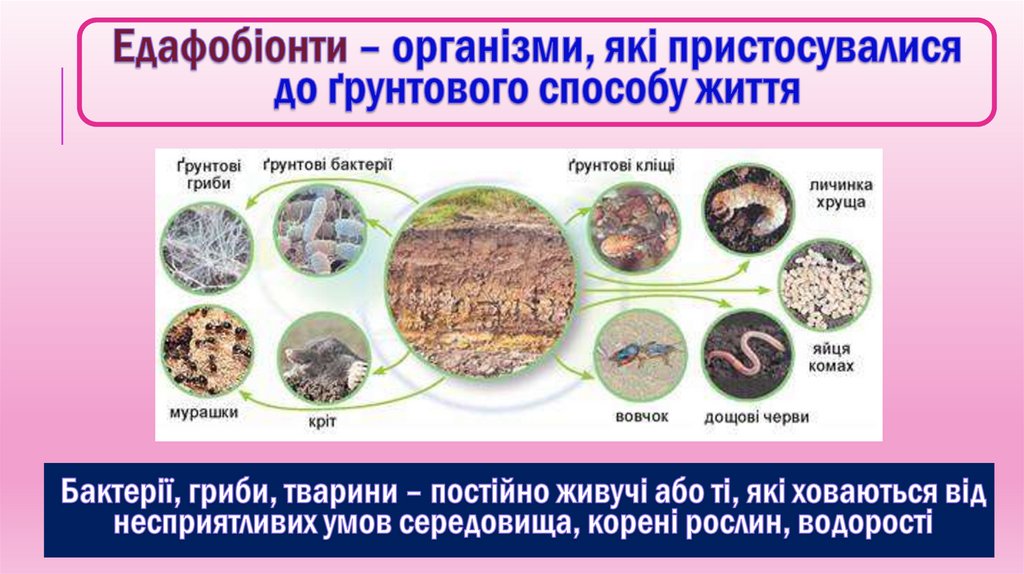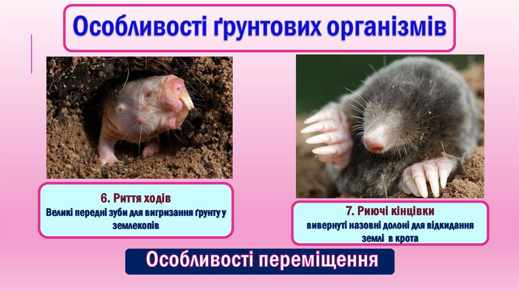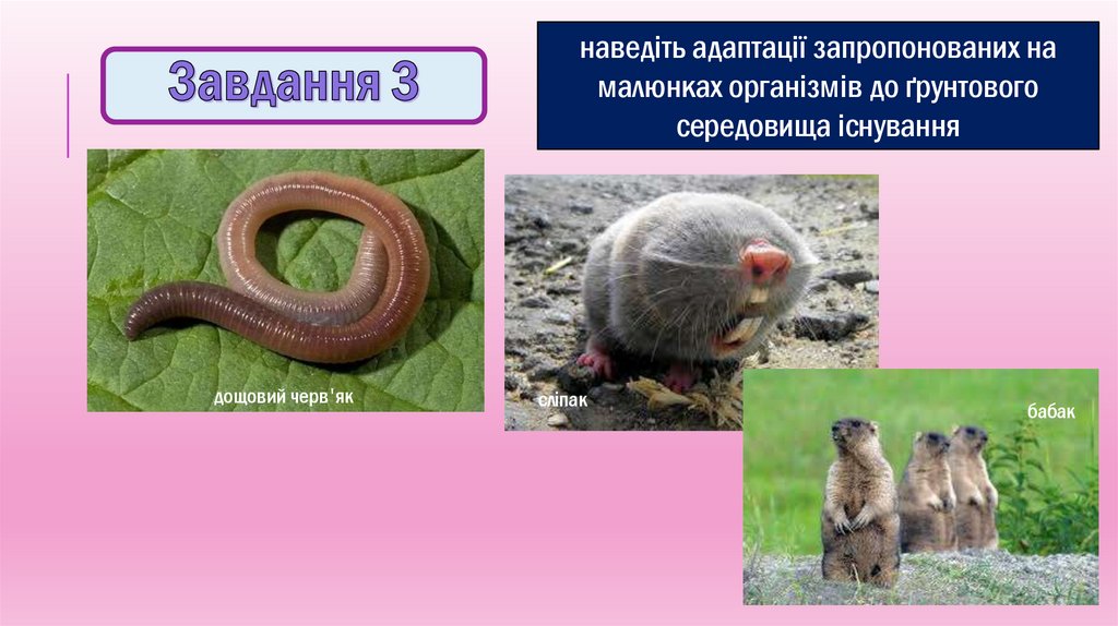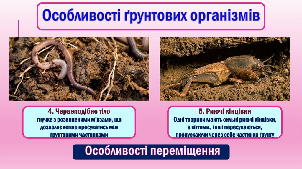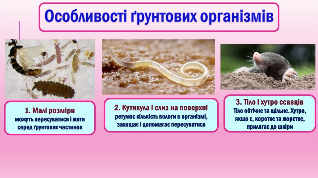наведіть адаптації запропонованих намалюнках організмів до ґрунтового