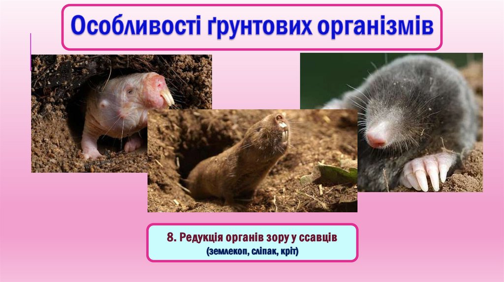 8. Редукція органів зору у ссавців(землекоп, сліпак, кріт)