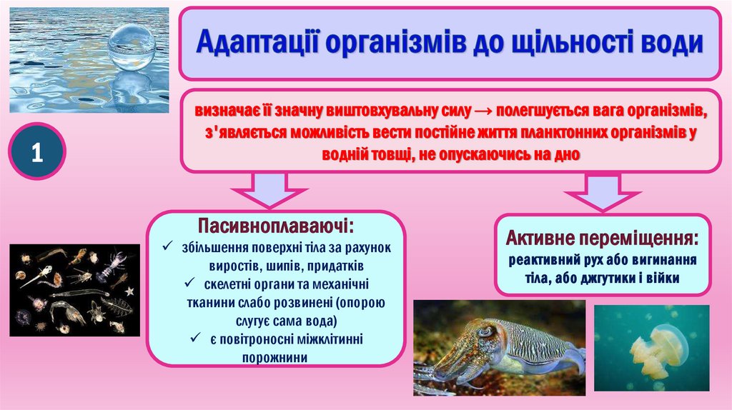 1визначає її значну виштовхувальну силу → полегшується вага організмів,