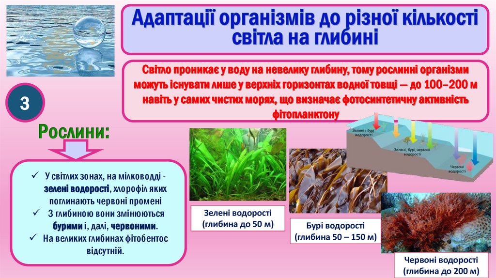 навіть у самих чистих морях, що визначає фотосинтетичну активність