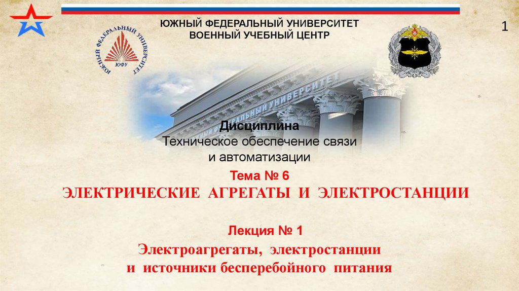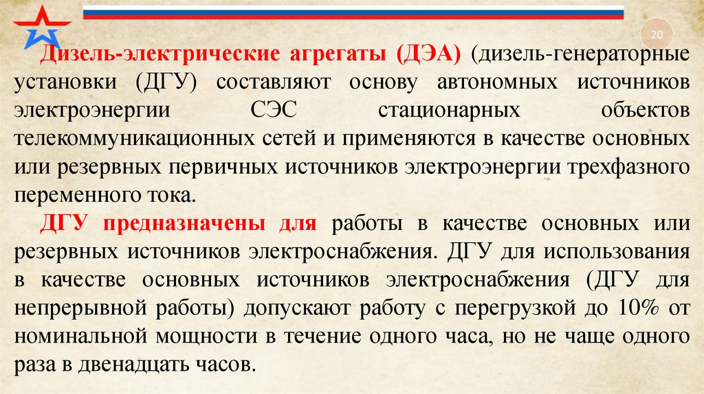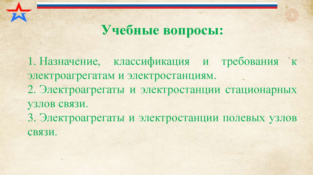5. Учебный вопрос № 1: «Назначение, классификация и требования к электроагрегатам и электростанциям».