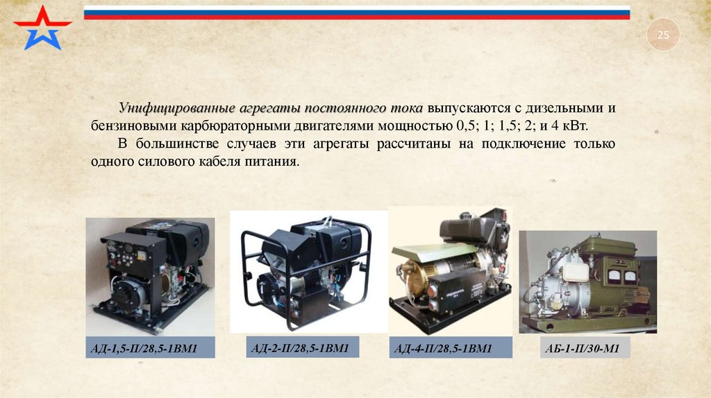 Данные агрегаты применяются в основном в составе СЭП аппаратных командноштабных машин и некоторых радиостанций средней мощности.