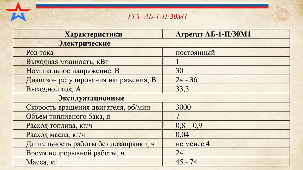 ТТХ АБ-1-П/30М1Характеристики
