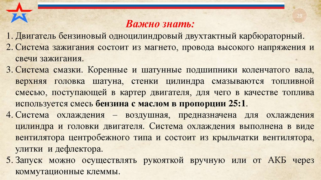 1. Двигатель бензиновый одноцилиндровый двухтактный карбюраторный.