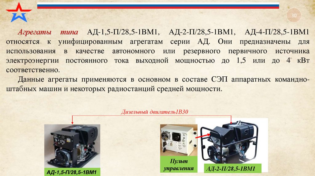 30Агрегаты типа АД-1,5-П/28,5-1ВМ1, АД-2-П/28,5-1ВМ1, АД-4-П/28,5-1ВМ1