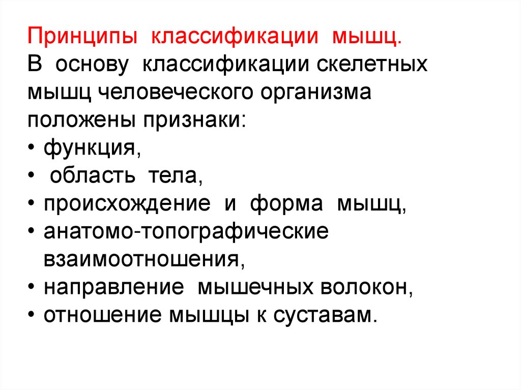 Принципы классификации мышц.В основу классификации скелетных