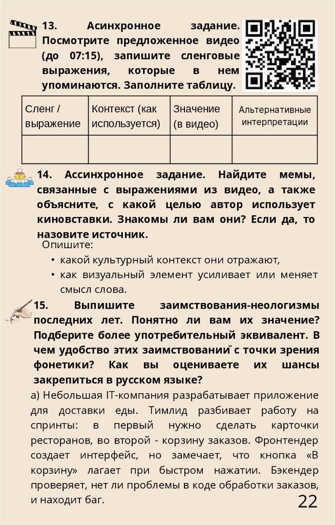 (до 07:15), запишите сленговые