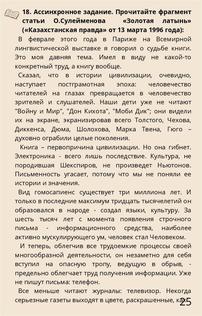 18. Ассинхронное задание. Прочитайте фрагментстатьи О.Сулейменова