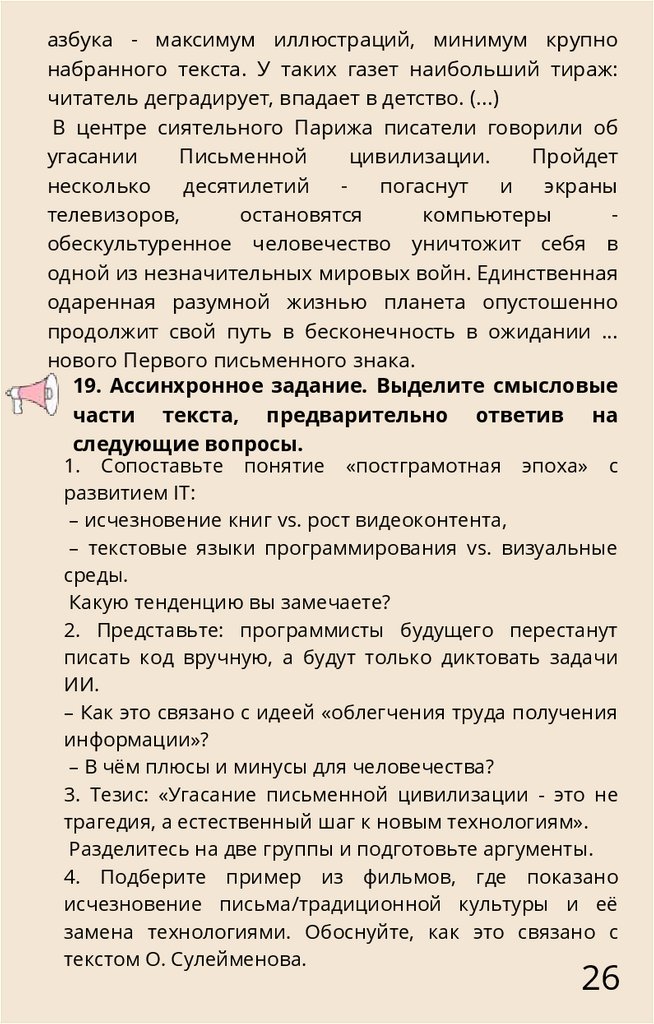 1. Сопоставьте понятие «постграмотная эпоха» с