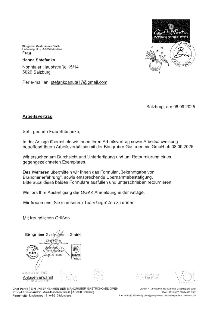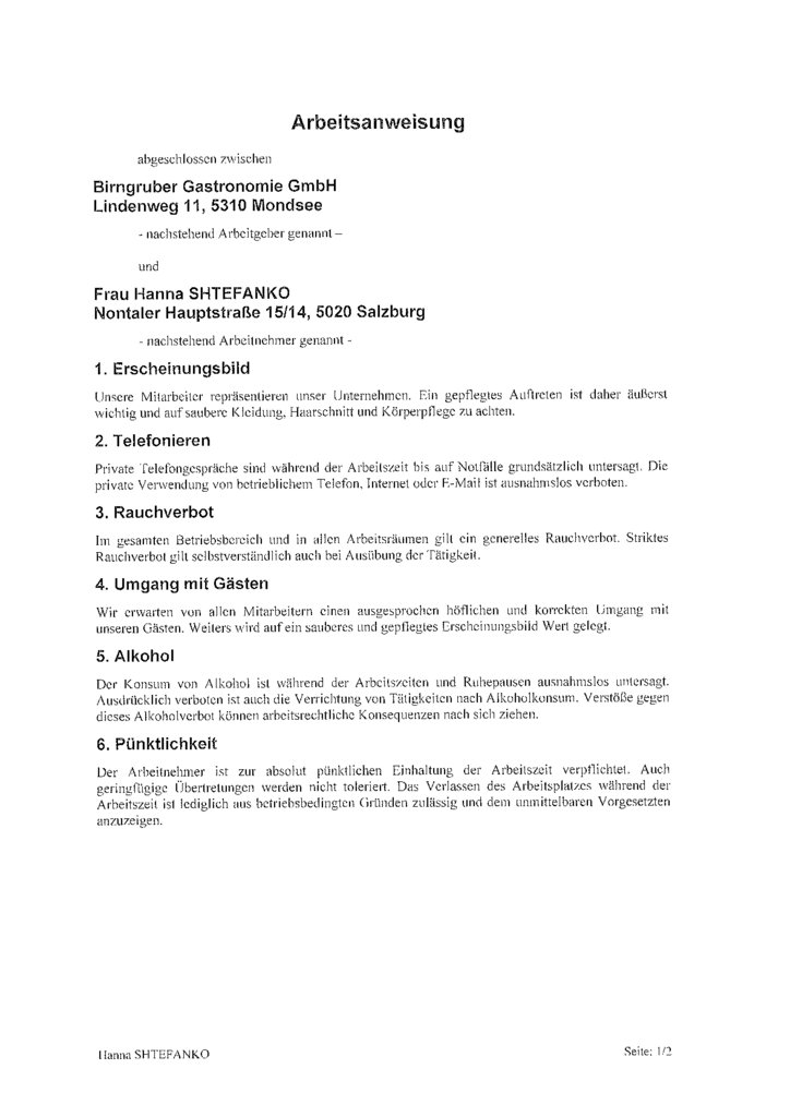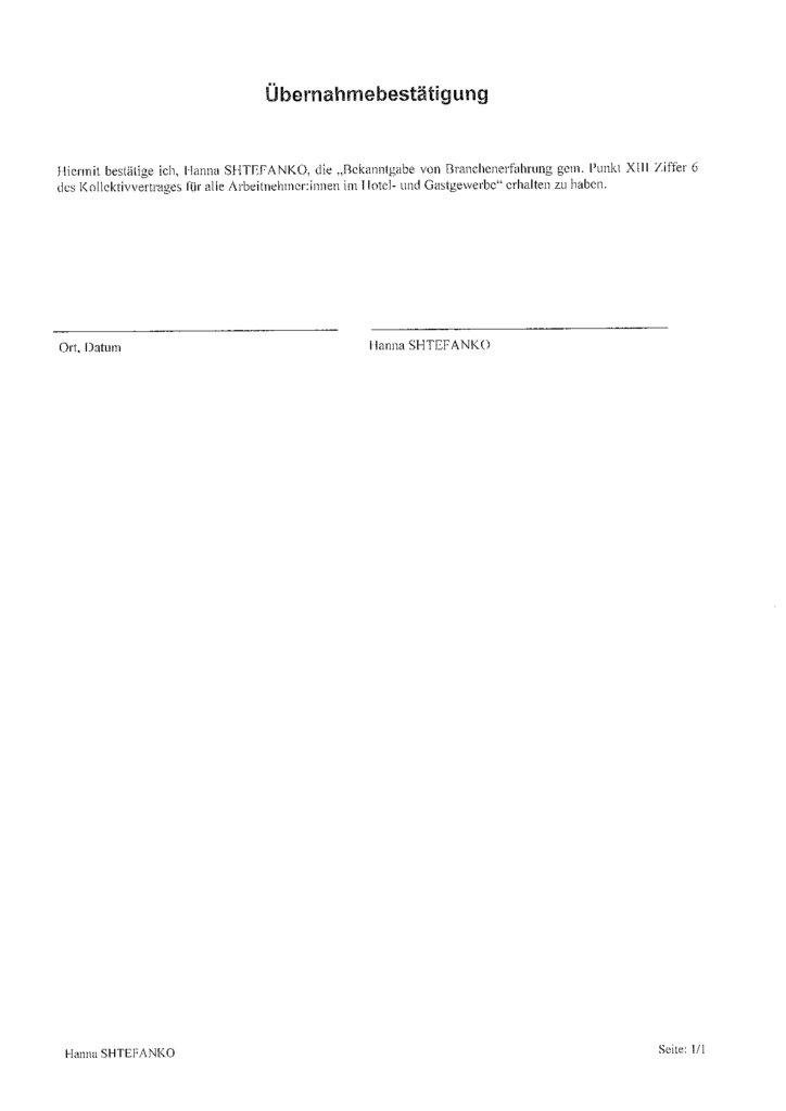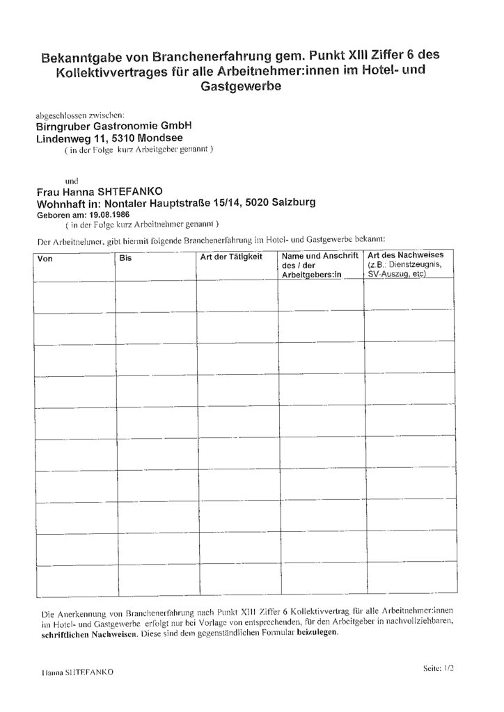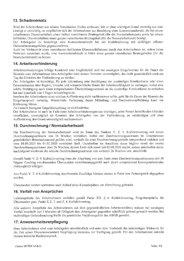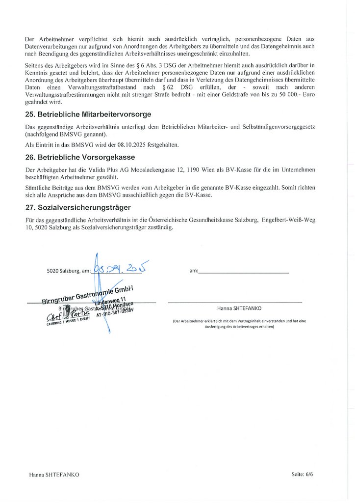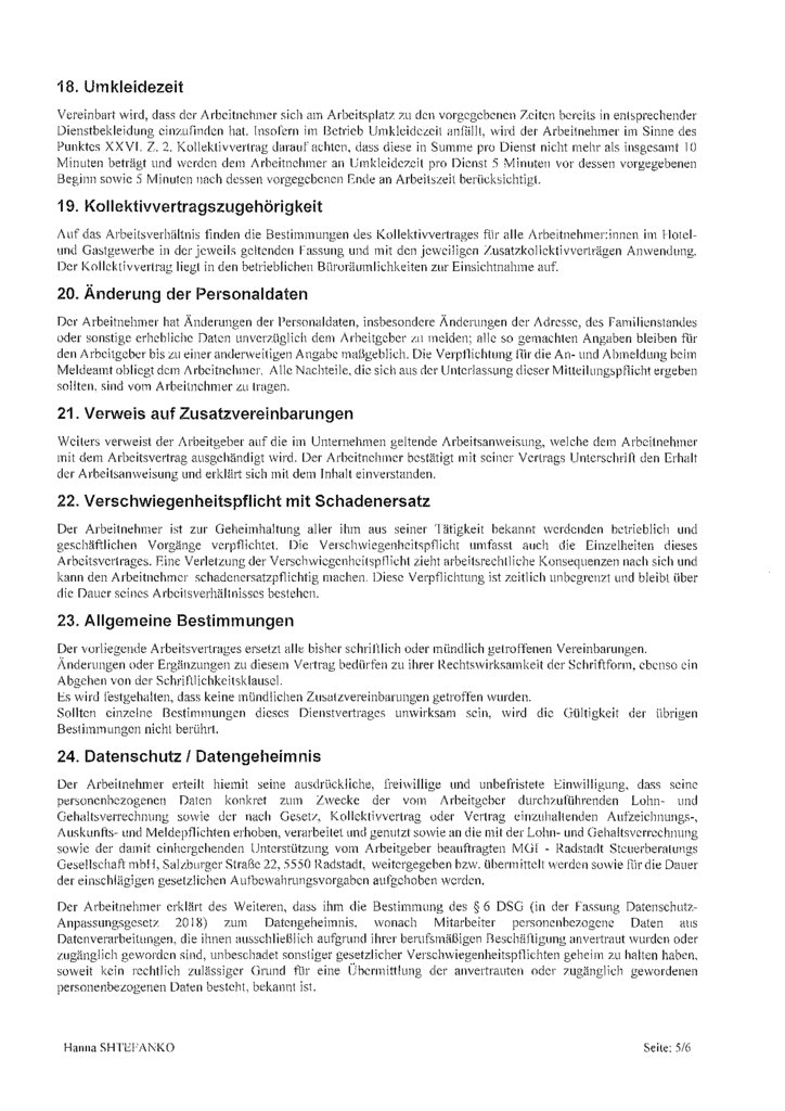Arbeitsvertrag für alle Arbeitnehmer:innen im Hotel- und Gastgewerbe