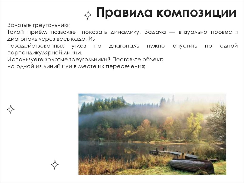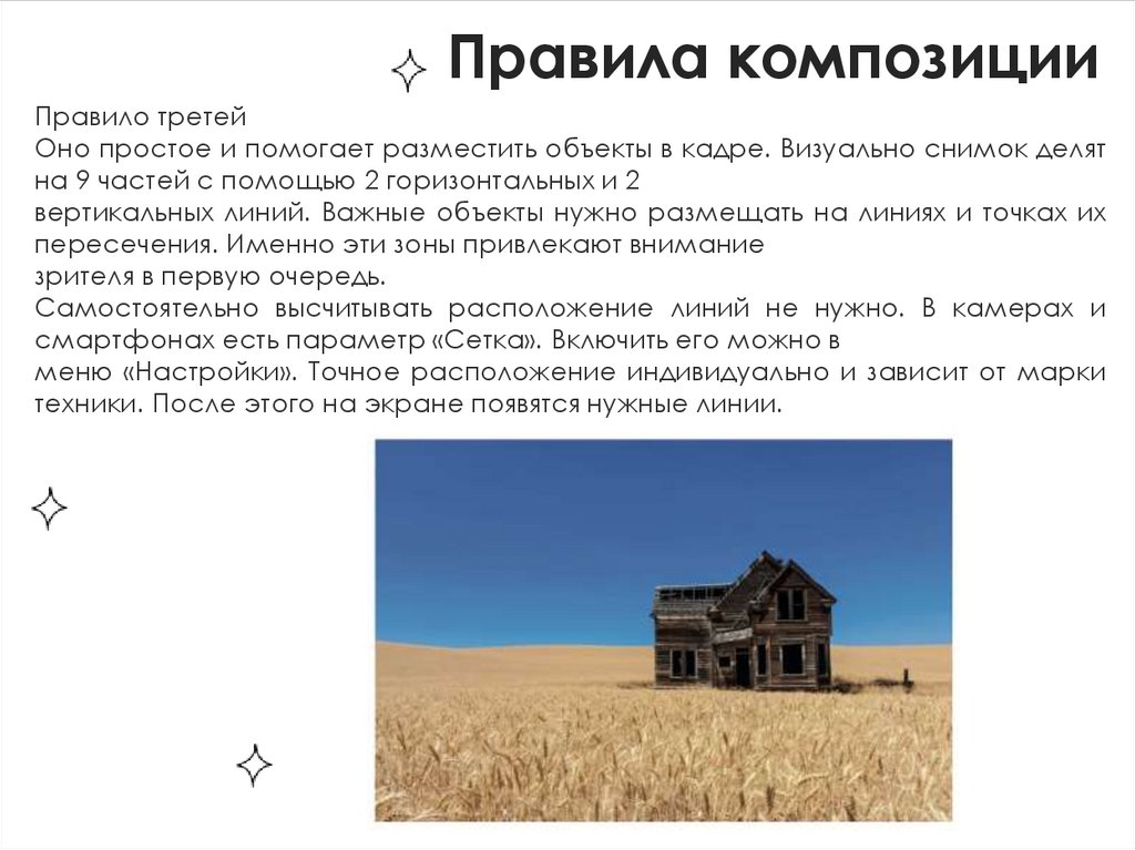Оно простое и помогает разместить объекты в кадре. Визуально снимок делят