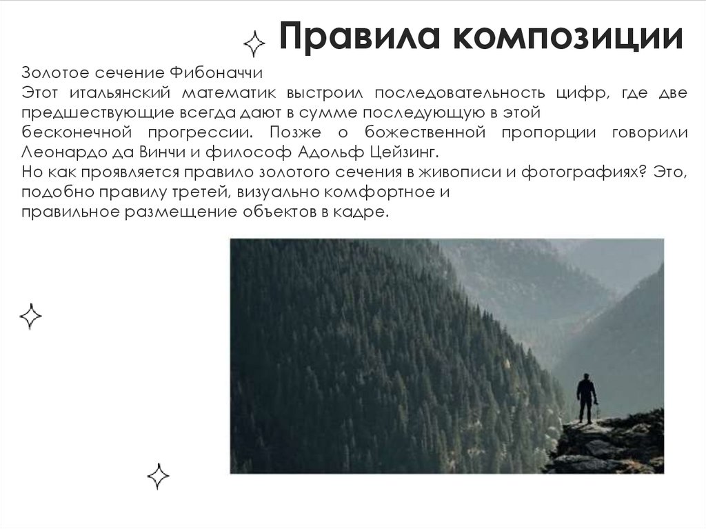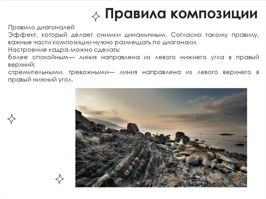 Эффект, который делает снимки динамичным. Согласно такому правилу,