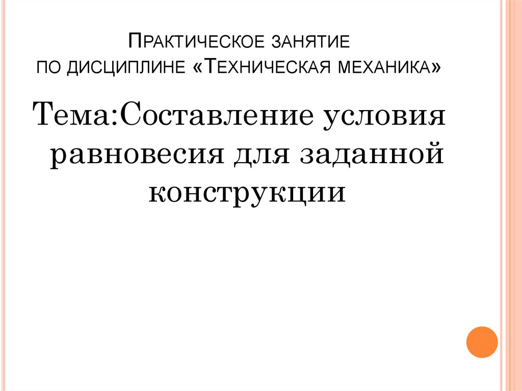 1. Практическое занятие по дисциплине «Техническая механика»