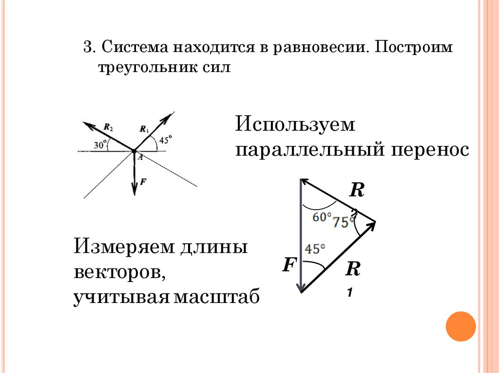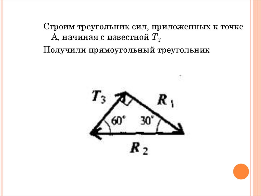 3. Система находится в равновесии. Построимтреугольник сил