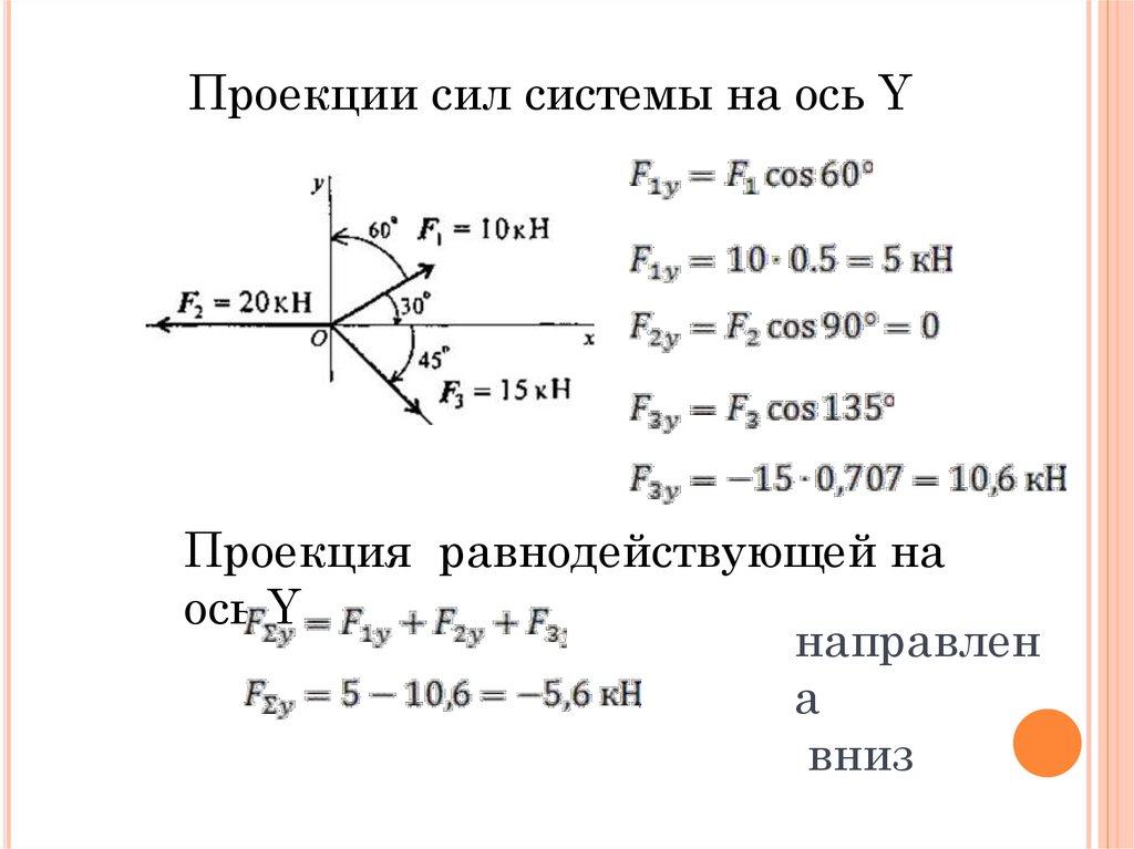 Проекции сил системы на ось YПроекция равнодействующей на