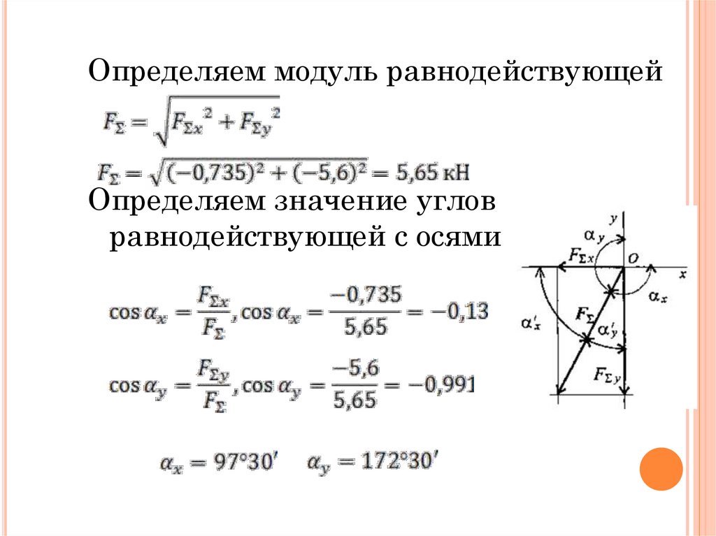 Определяем модуль равнодействующейОпределяем значение углов