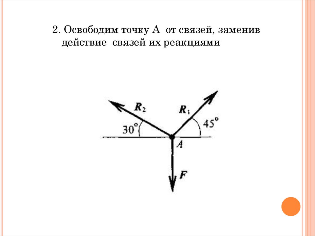 2. Освободим точку А от связей, заменивдействие связей их реакциями
