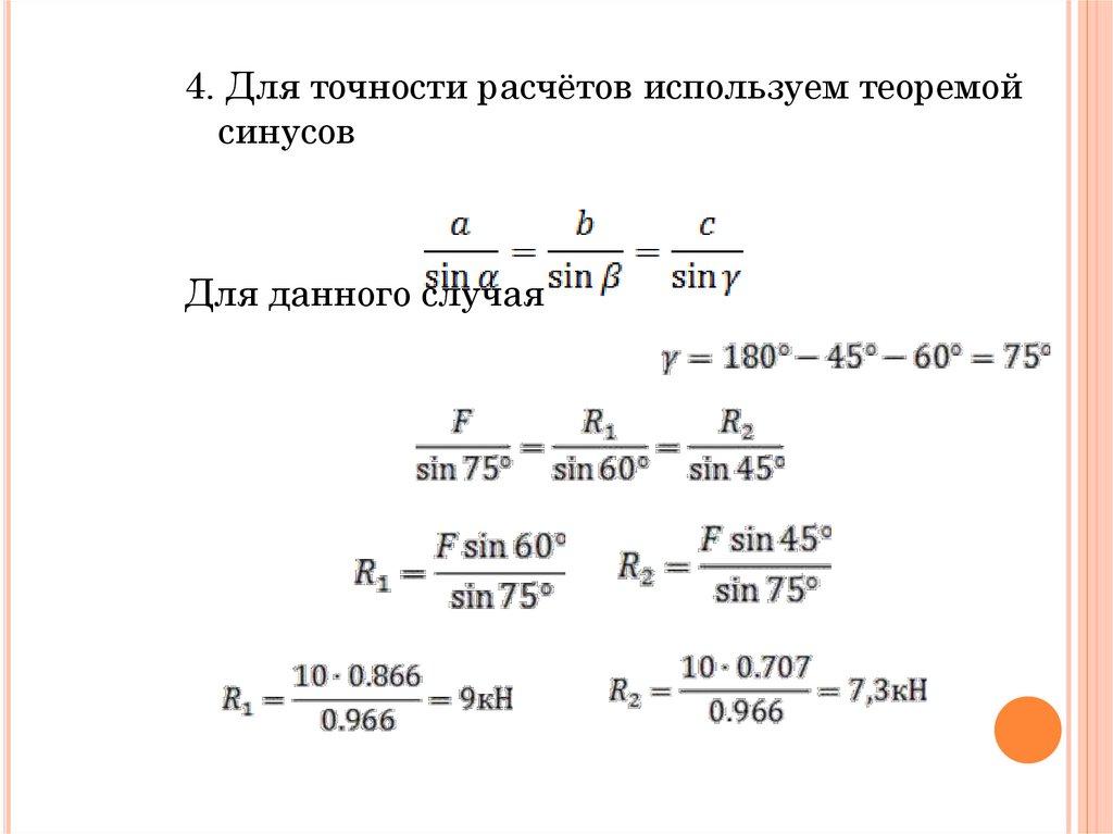4. Для точности расчётов используем теоремойсинусов