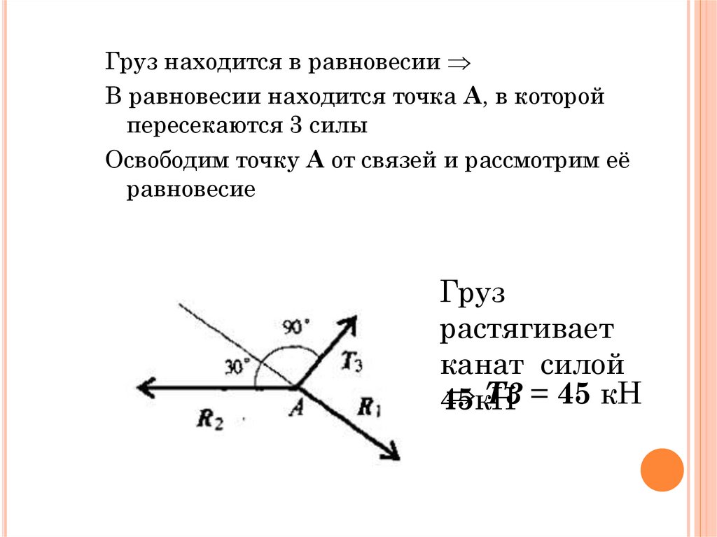 Груз находится в равновесииВ равновесии находится точка А, в которой
