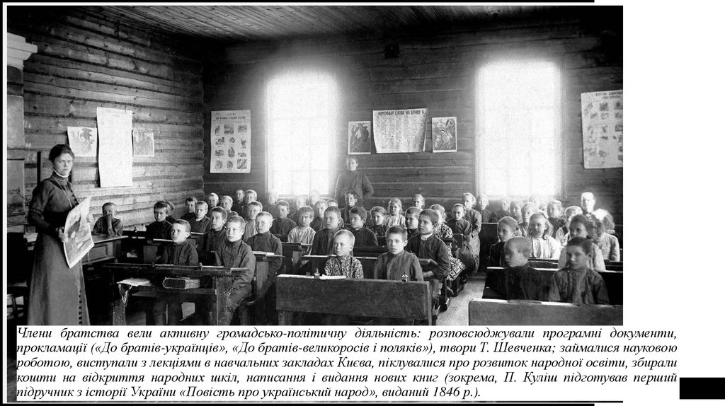 роботою, виступали з лекціями в навчальних закладах Києва, піклувалися про розвиток народної освіти, збирали
