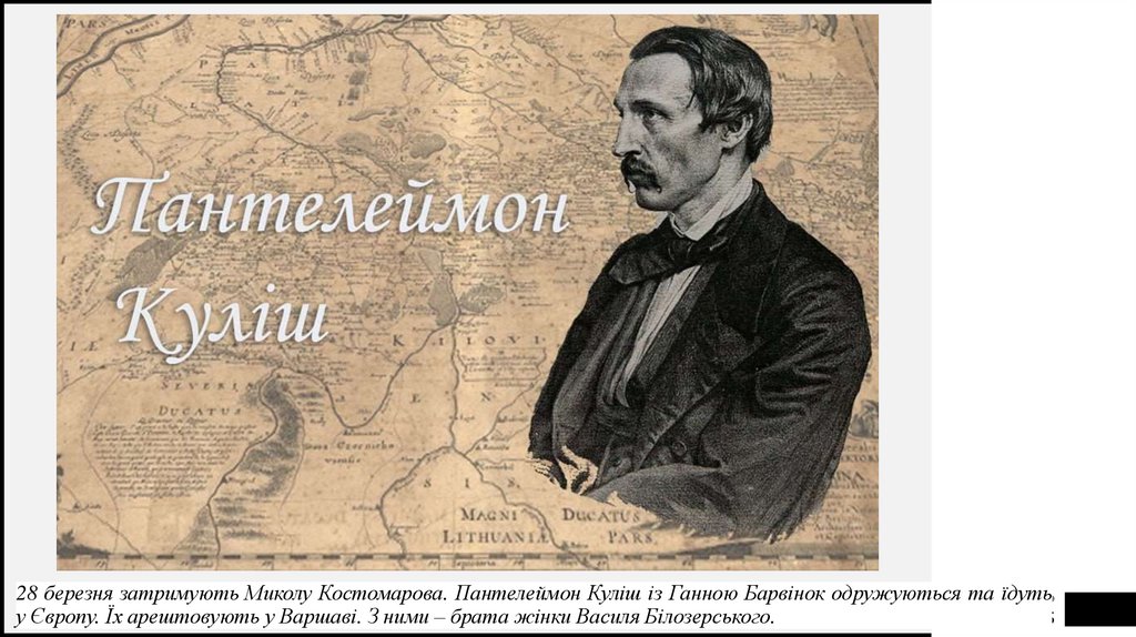 28 березня затримують Миколу Костомарова. Пантелеймон Куліш із Ганною Барвінок одружуються таFIRSTїдуть