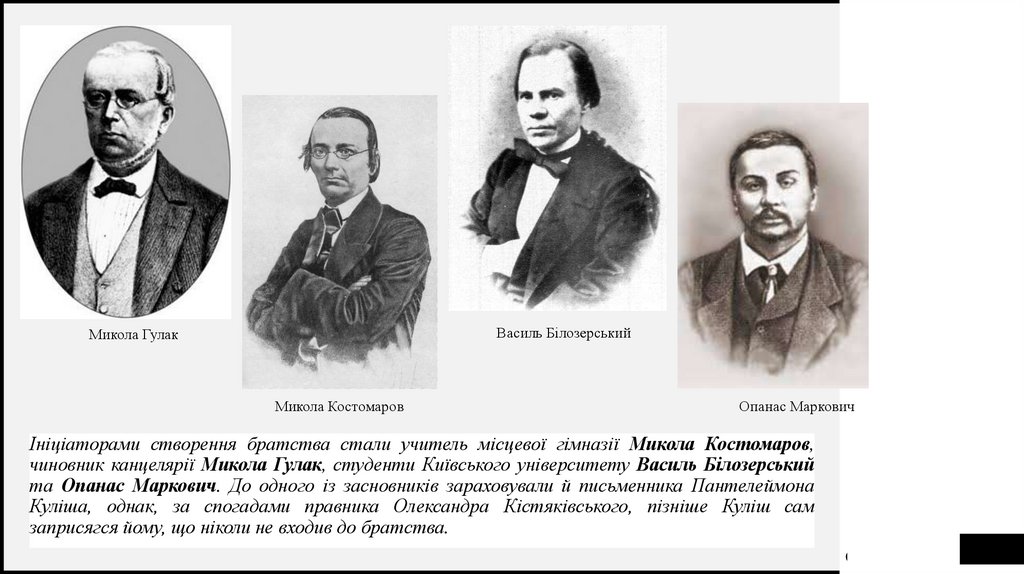 чиновник канцелярії Микола Гулак, студенти Київського університету Василь Білозерський