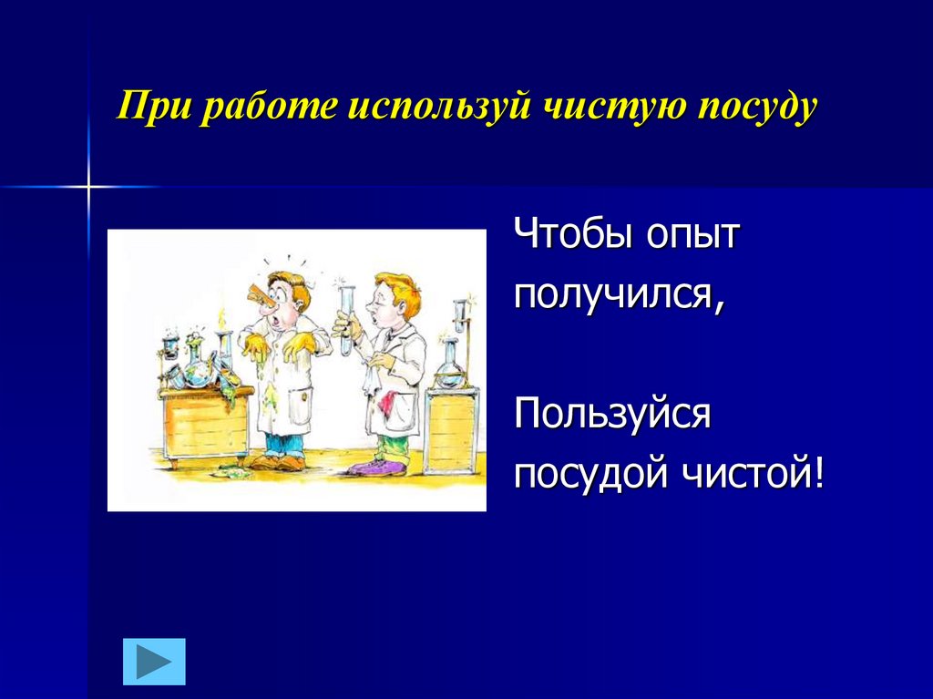 При работе используй чистую посудуЧтобы опыт