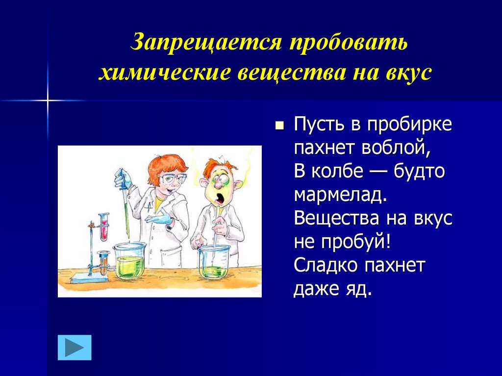 Запрещается пробоватьхимические вещества на вкус