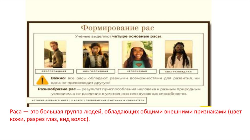 Раса — это большая группа людей, обладающих общими внешними признаками (цвет