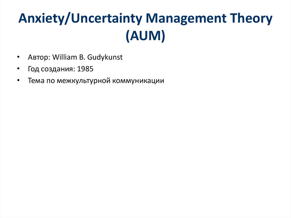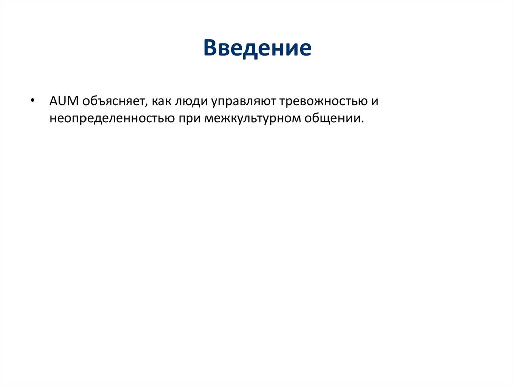 Введение• AUM объясняет, как люди управляют тревожностью и