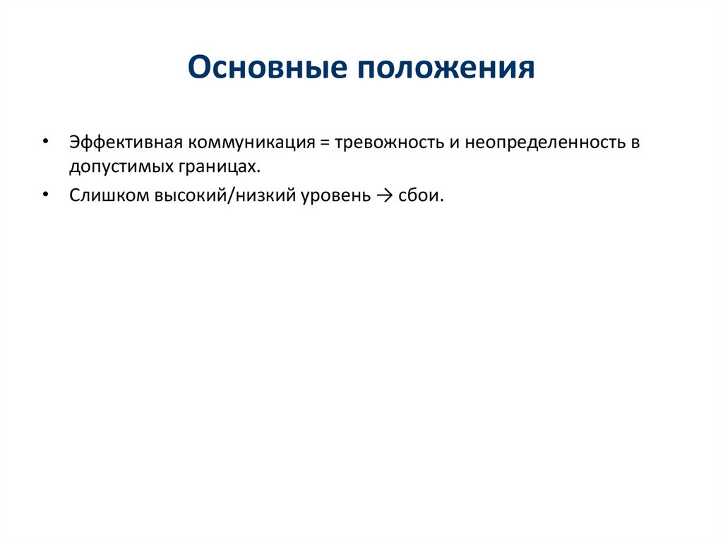 Основные положения• Эффективная коммуникация = тревожность и неопределенность в