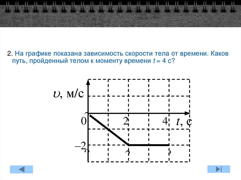2. На графике показана зависимость скорости тела от времени. Каковпуть, пройденный телом к моменту времени t = 4 c?