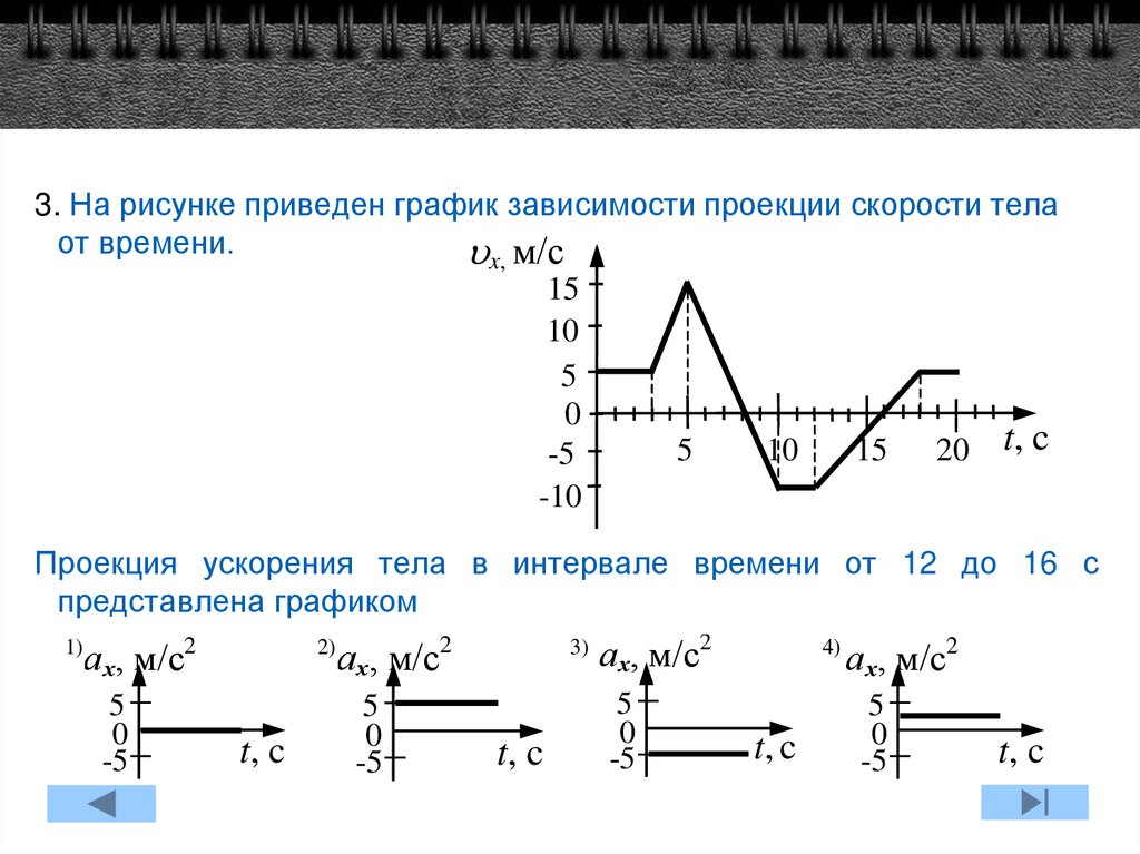 3. На рисунке приведен график зависимости проекции скорости телаот времени.