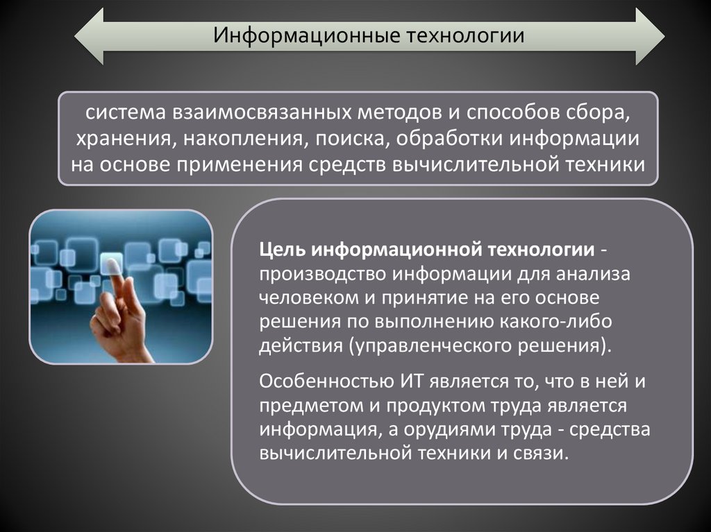 Особенностью ИТ является то, что в ней и